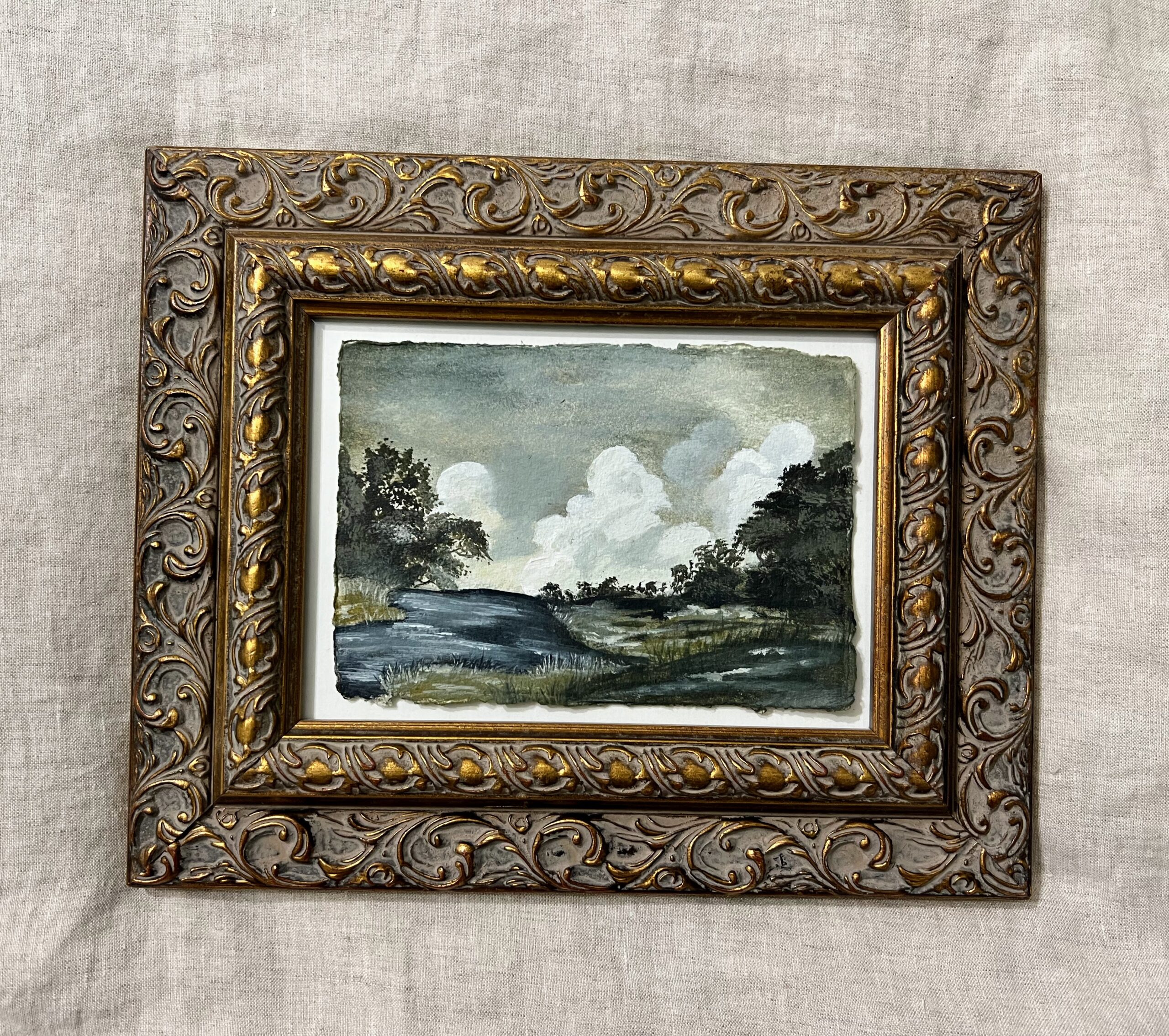 An original oil painting on a 4×6 on homemade cotton rag paper. Size may vary slightly on homemade paper.